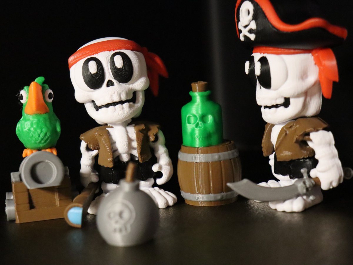 🧩 Inhalt: Skelett-Pirat, Papagei, Fass, Säbel, Flasche, Piratenhut, Zubehör